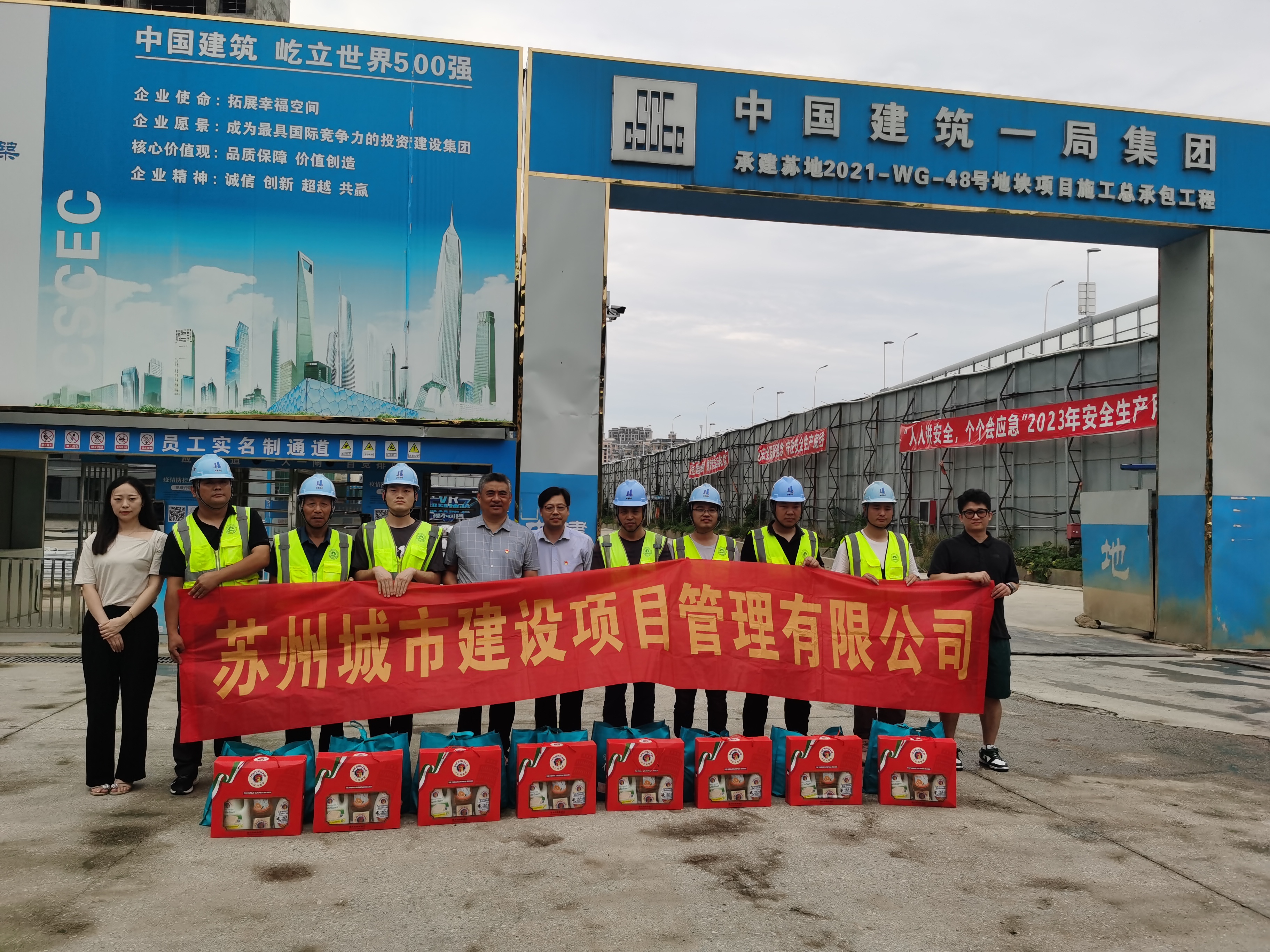 進(jìn)入七月以來,高溫天氣持續(xù),熱浪襲人,蘇州城市建設(shè)項(xiàng)目管理有限公司監(jiān)理部全體監(jiān)理人員始終堅(jiān)守崗位,為確保各項(xiàng)目現(xiàn)場監(jiān)理工作順利開展,切實(shí)做好防暑降溫工作。近日,公司工會組織前往各項(xiàng)目監(jiān)理部開展夏日送清涼慰問活動,讓監(jiān)理人員在最“炎熱”的季節(jié)感受到最“清涼”的關(guān)懷。